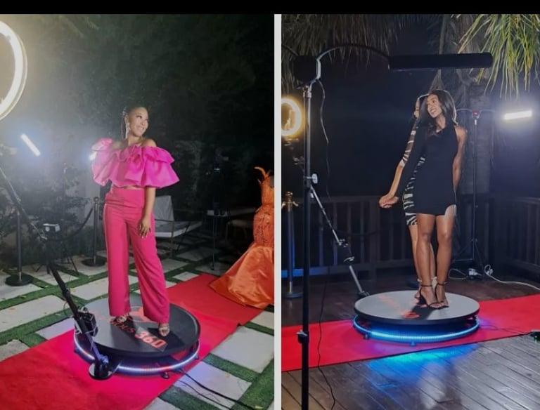 Δίνουμε ζωή στις εκδηλώσεις σας με το φωτογραφικό μας photobooth 360 μοιρών, απαθανατίζοντας κάθε γωνία και στιγμή με εκπληκτική λεπτομέρεια.
