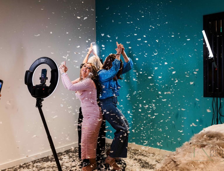 Οι καλεσμένοι γελούν και κάνουν παιχνιδιάρικες πόζες πάνω στο photobooth μας, δημιουργώντας αναμνήσεις γενεθλίων που γυρίζουν πίσω με κάθε λήψη.